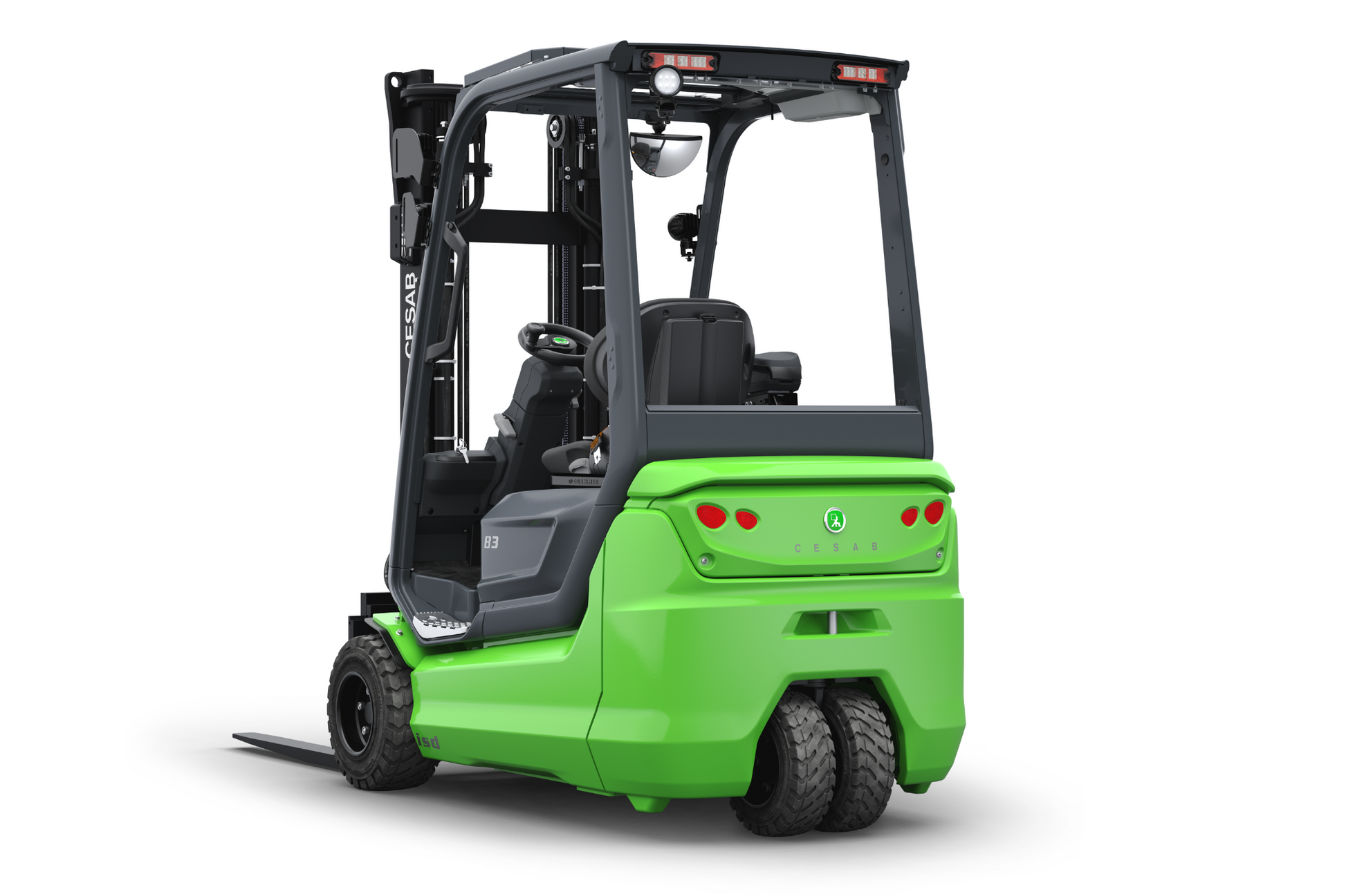 Incorporating CESAB’s Intelligent Stability Design (ISD) and Intelligent Mast Design (IMD), the B300 prioritises operator safety and load control while maximising productivity. The rear twin-wheel configuration enhances traction and load stability, offering precise handling on various surfaces. The operator-centric design features a spacious cabin with ergonomic controls, providing comfort during extended shifts.