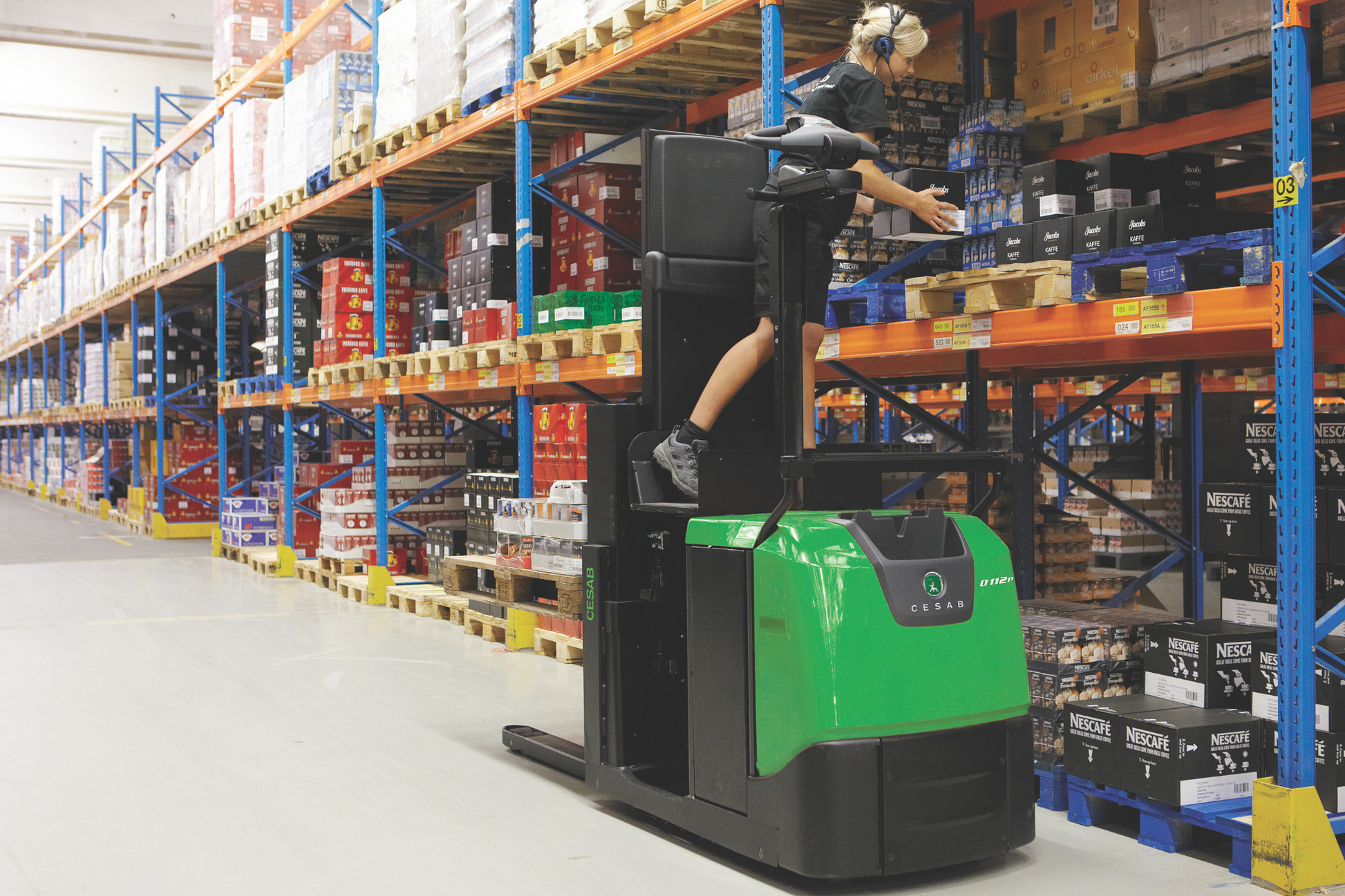 CESAB O112 & O112P Low-Level Order Pickers – 1200kg Capacity | Electric Stand-On Trucks with Fork Lifting for Heavy Goods Picking