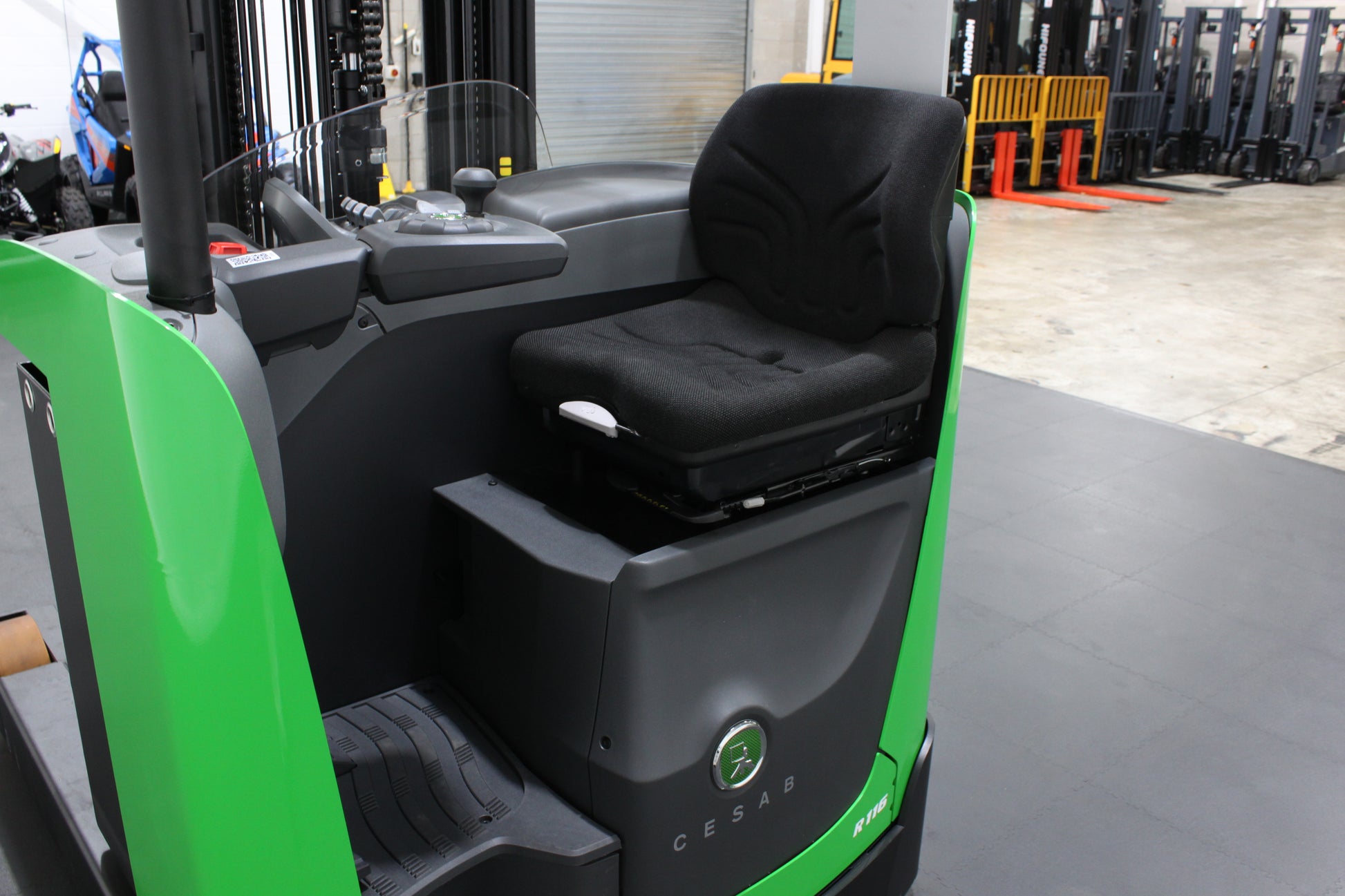 The CESAB R116 Electric Reach Truck is an efficient and reliable solution for material handling in narrow aisle environments. With a 1,600kg load capacity and a maximum lift height of 5,700mm, this electric reach truck is perfect for warehouse and distribution centres that require high performance in confined spaces. Designed with the latest AC driving system and CESAB Drive Control System, the R116 provides exceptional control and energy efficiency. The ergonomic design features fingertip controls, a large colour display screen, and a fully adjustable fabric seat, offering the operator both comfort and precision.